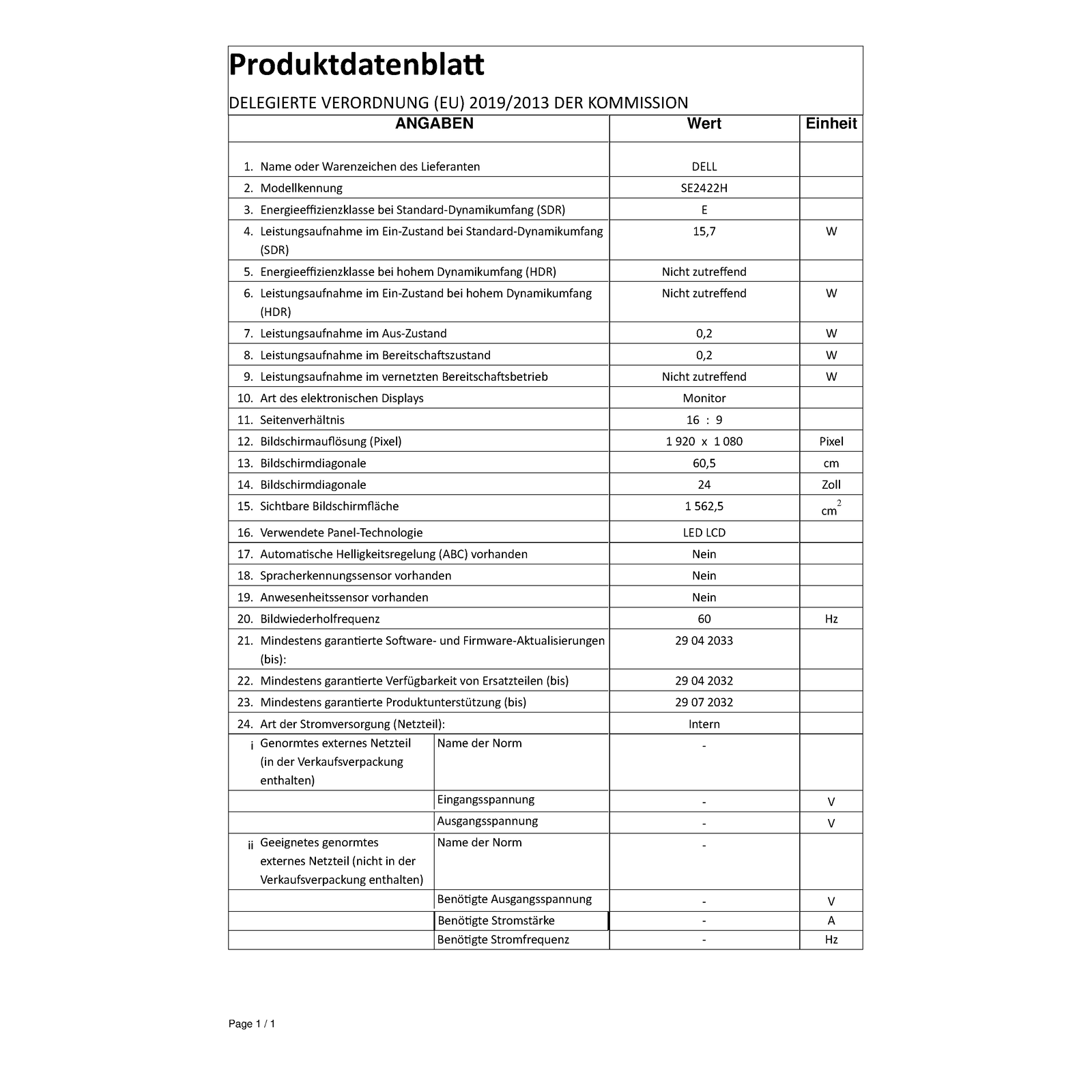- 24 Monitor - SE2422H- 60.5cm (23.8’’)