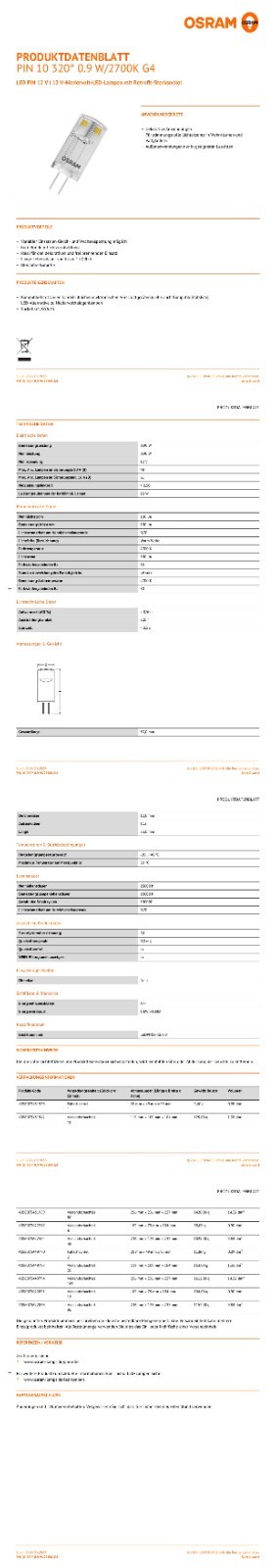 Artikel 1 OSRAM LED-Stiftsockellampe, PIN10, G4, EEK: F, 0,9W, 100lm, 2700K