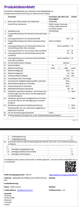 Artikel 7 Samsung W128289596 LF24T452FQRXEN F24T452Fqr 61 Cm (24) 1920 X 1080 Pixels ~E~