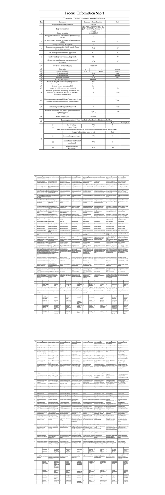 Samsung W128303086 LS32B800PXPXEN Led Display 81.3 Cm (32) 3840 X 2160 Pixe ~E~