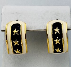Vintage Ohrringe 1980-90er Jahre goldfarben marine weiß Emaille Stern