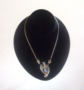 Vintage Heart Leaf Blue Teardrop Setting with Rhinestones Gold Necklace 16"