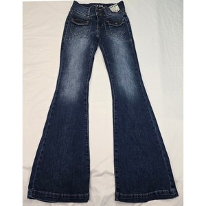 Girlish Low Rise Flare Jeans Damen 0 24 Dark Wash Denim Y2K Bell Bottom 24x30