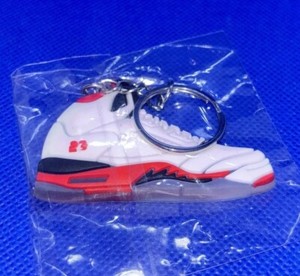 Nike Air Jordan 5 Sneaker Schlüsselanhänger 2D flach Gummi 2,5” x 1,25” - weiß & rot