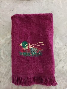 LTD CHRISTMAS ONE HAND TOWEL BURGANDY WITH DUCKS NEW