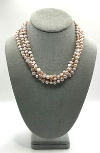 CV36 Vintage Halskette rosa Perlen und silberfarben Magnetverschluss mehrere Strang