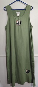 Vintage Mandal Bay Damen Medium Huhn grün Pullover Kleid Taschen Prärie Landhaus