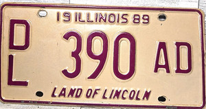 Illinois Händler Nummernschild 1989 DL 390 AD niedrige Ziffer Nummer 3-stellig LKW