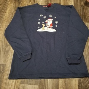 Rudolph Weihnachtspullover Sweatshirt Damen klein blau Weihnachtsmann Schnee Urlaub