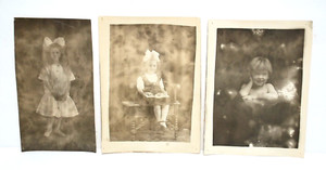 Antike Fotos Schrankkarte Fotos sitzende Kinder Mädchen Baby Kinder 3 Stück