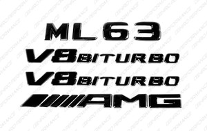 Set Gloss Black Emblems Logos Letters for Mercedes-Benz ML63 V8 Biturbo AMG W164