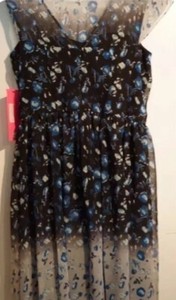 The dress is in new condition as described. I got it for an excellent price! I appreciate the extra care the seller took to protect the sequins by wrapping the dress in cardboard. Very happy with this purchase!