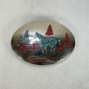 Vintage Crushed Türkis & rote Koralle Pferd Gürtelschnalle silberfarben Nickel Rodeo