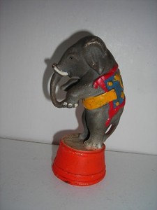 Vintage AC WILLIAMS Cast Iron Bank - Upright Circus Elephant on Tub - Ohio