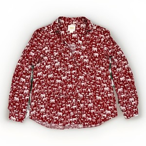 Maeve Anthropologie Safari Animal Print Bluse Damen S weinrot offener Ausschnitt Boho
