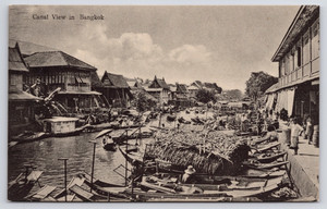 1910s Bangkok, Siam View of Canal Merchants Fishermen Thailand Unposted Postcard