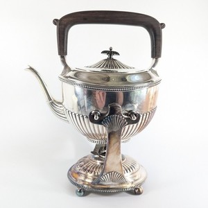 Antike Gorham versilberte kippbare Teekanne mit Stövchenständer - 1904 Harfenmarke
