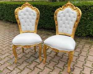 Esszimmerstühle Italienisch Barock 2er Set Blattgold Geschnitzt Gepolstert El...