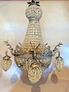 Kronleuchter Vintage Louis XVI Bronze 10-flammig mit Hirschkopf Ornamenten