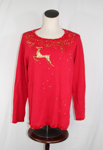 Quacker Factory Rentier rot Pailletten gold Größe M Weihnachten Urlaub