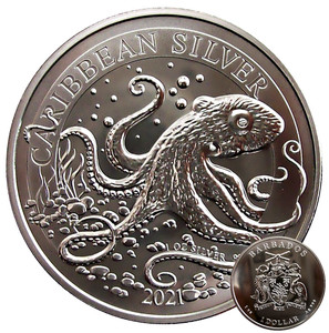 Octopus 2021 Silbermünze 1oz Silber Ag 999 Barbados Caribbean Silver *