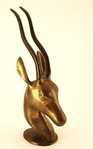 Vintage Messing Antilopenkopf mit Geweih 11" hoch auf Sockel