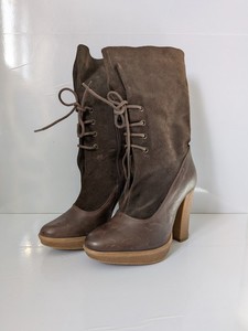 Benetton braune Wildleder Leder Plateau Schnürstiefel UK 6,5 Blockabsatz 90er Y2K
