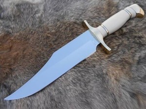 MASSGESCHNEIDERTE HANDGEFERTIGTE D2 WERKZEUG STAHLKLINGE JAGD BOWIE MESSER KNOCHENGRIFF + SCHÜLLE EUR 111,77