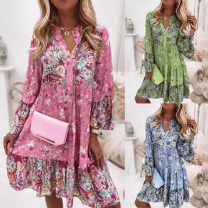 Sommer Damen Nähte Temperament Swing Rock Schlankmacher Knopf Langes Kleid EUR 52,09Bisher: EUR 61,28