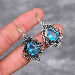 Schweizer Blautopas Edelstein Handarbeit 925 Sterlingsilber Schmuck Ohrring S-1,5 Zoll