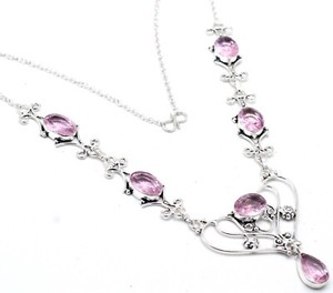 925 Sterling Silver Pink Topaz Gemstone Handmade Jewelry Necklace S-17-18