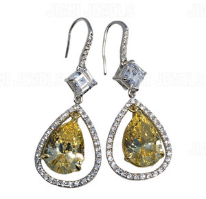 Canary Yellow Simulated Diamond Dangle Drop Earrings Silver 14k White Gold Finsh