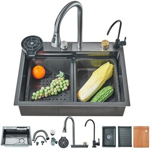 Küchenspüle Edelstahl Wasserfallspüle SpülbeckenSet Einbauspüle mit Wasserhahn EUR 135,00 bis EUR 209,00