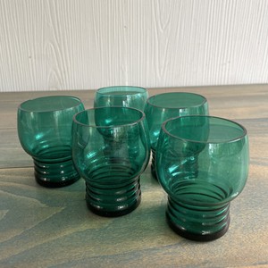 5er Set Vintage MCM türkis grün gerippter Boden Glas Glühbirne Cordial Gläser (11)