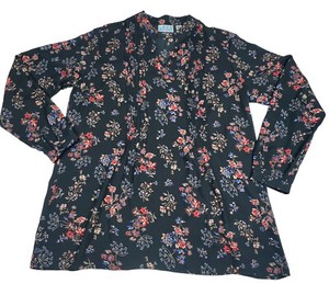 Joan Rivers Blumendruck schwarz V-Ausschnitt Tunika Top Größe 8