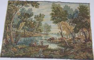 Quite large with fine stitching (meaning many hours to complete as any needlepointer would know). Photo & description are accurate. Privlce was fair considering its size. I hope to have it professionally restored (cleaned & new backing) then give as a baby gift. Hope the parents will appreciate what a work of art this is. Well packed against the elements. Expensive to ship, but that's on Ebay not Seller. Highly recommend Seller of this unique tapestry.