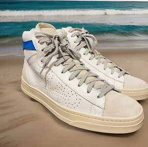 P448 Skate High Top Sneaker weiß Leder Buff Wildleder blauer Besatz 42 9-9,5 Herren