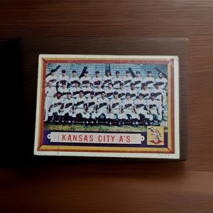 1957 Topps Baseballkarte Kansas City Leichtathletik Teamkarte Vintage sehr guter Zustand + #204 Falte