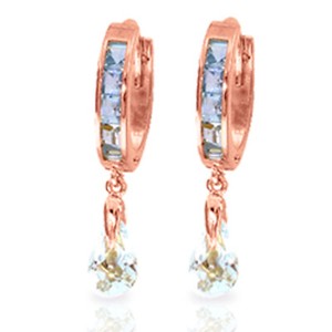 14K. Gold Ohrring mit Hebelverschluss und Blautopas & Perlen (Weißgold)