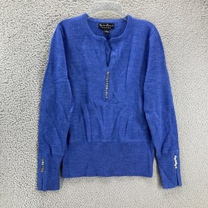 Mercer & Madison Italian Merino Wool Sweater L Split Neck Blue Mother of Pearl