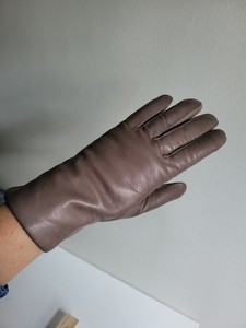 Vintage Isotoner Navy Stoff mit Lederbesatz Damen Handschuhe Gr. L