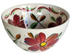 Große handbemalte Obstschale - Vintage spanische Keramik - florale Servierschale