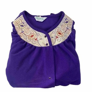 Laura Ashley Vintage lila Morgenmantel Gr. Medium bestickt Druckknopfverschluss Tasche lang