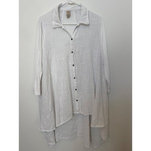 XCVI Weiß Baumwolle Hi-Low Tunika Oberteil Knopfleiste Langarm Damen Gr. L Lagenlook