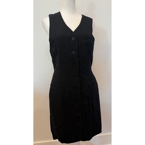 Ann Taylor Vintage Wollmischung schwarz Knopfleiste ärmellos Kleid 4 Weste Anzug