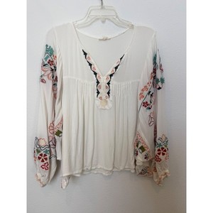 Tasha Polizzi bestickte Blumen Bluse Western Boho Knopfleiste Oberteil vorne zum Binden S
