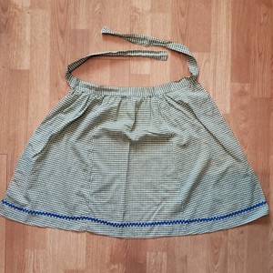 Vintage handgefertigte halbe Schürze braun weiß kariert 19,5" lang 68" Taille mit Bändern