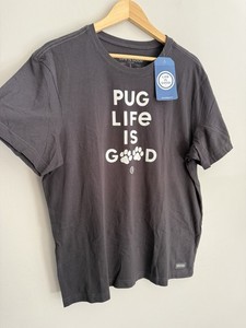 NEU Life Is Good Mops Life Is Good Grafikdruck T-Shirt in Schwarz Herren Gr. L "