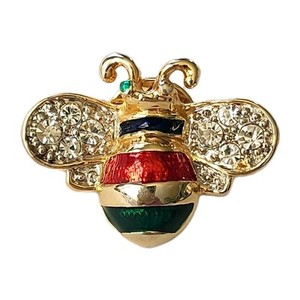 Cabochon Biene Anstecknadel rot Emaille mit Kristallen - 18K vergoldet Ansteckbrosche