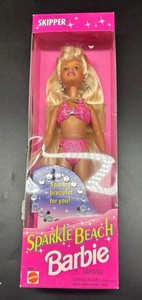 Vintage 1995 Mattel Barbie Sparkle Beach Skipper Puppe mit langen blonden Haaren Neu